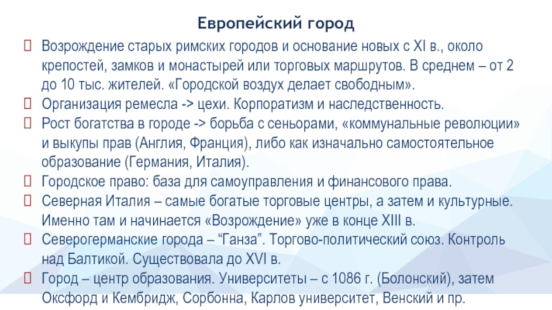 города как центра производства, накопления и распределения богатства. Появление экономической
