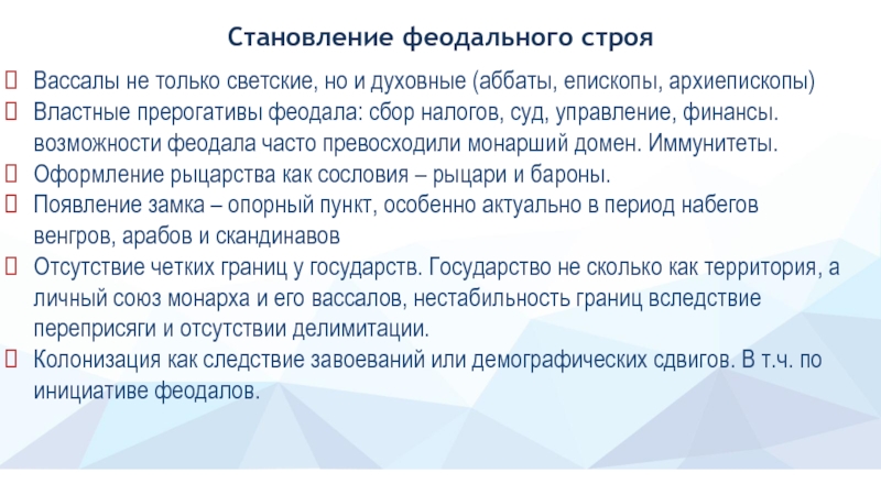 Феодальный строй: пожалование сеньора вассалу в обмен на военную службу и участие в делах сеньора. Взаимные обязательства. Оммаж.