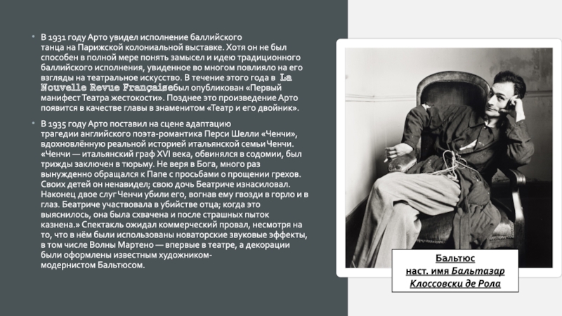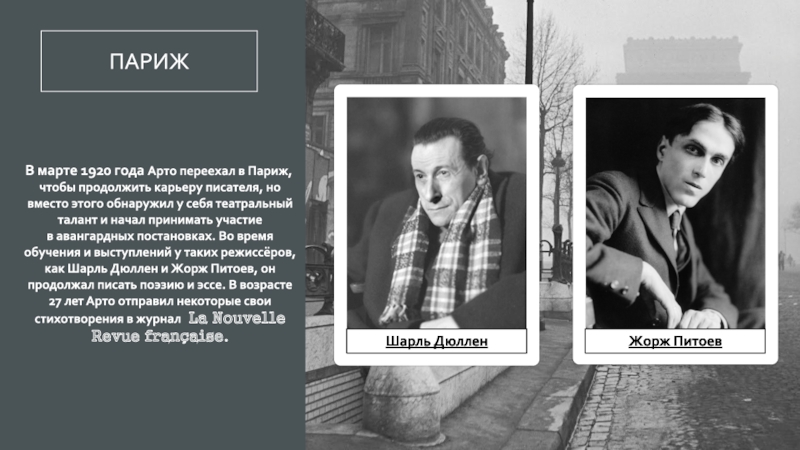 Проходя лечение в Швейцарии, Арто пристрастился к творчеству Артюра Рембо, Шарля Бодлера и Эдгара Аллана По. В мае 1919 по назначению врача Арто начинает принимать опиум и быстро приобретает зависимость, от которой он не смог избавиться до самой смерти. К началу 1920 года состояние Арто улучшилось, и в марте он отправляется в Париж, где планирует заняться литературой.