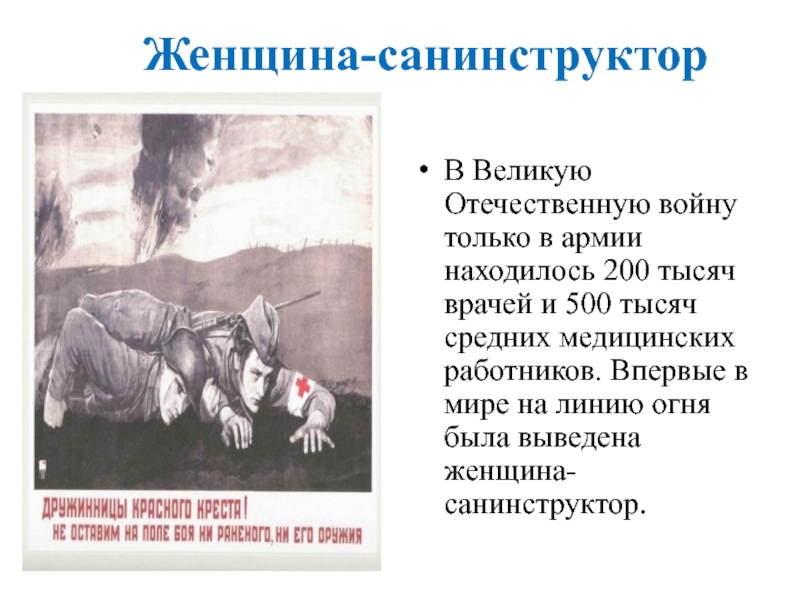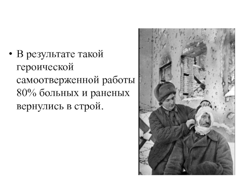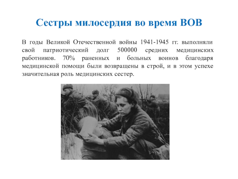 раненных и больных воинов благодаря медицинской помощи были возвращены в строй, и в этом успехе значительная роль медицинских сестер.