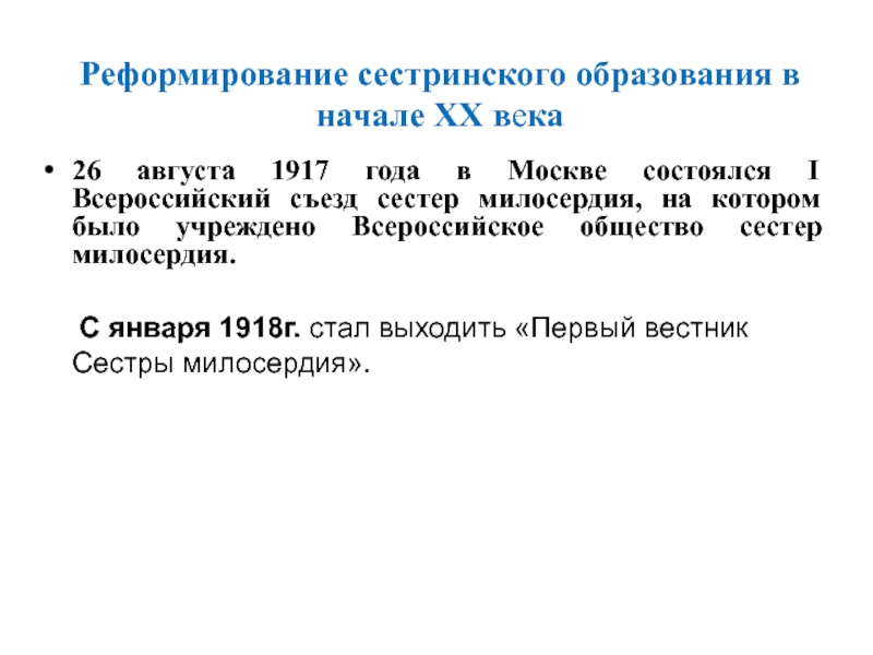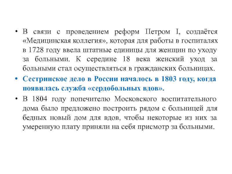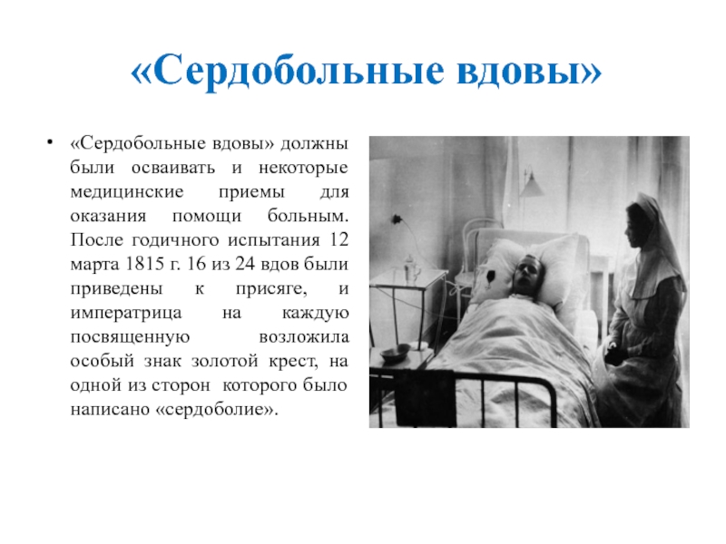Сестринское дело в России началось в 1803 году, когда появилась служба «сердобольных вдов».