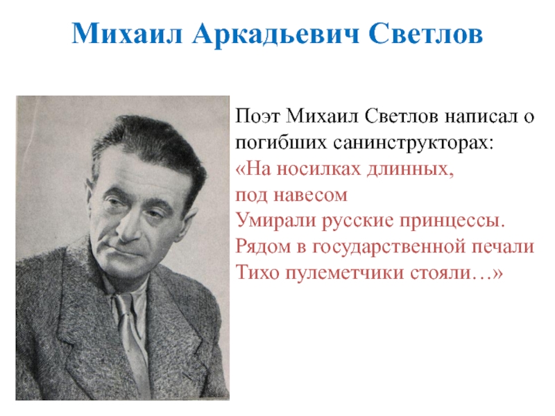 Поэт Михаил Светлов написал о погибших санинструкторах: