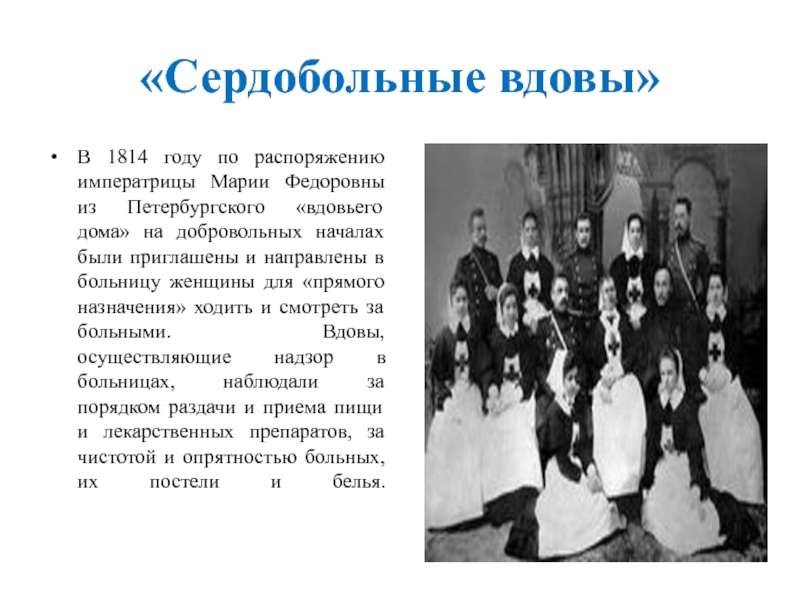 Петербургского «вдовьего дома» на добровольных началах были приглашены и направлены