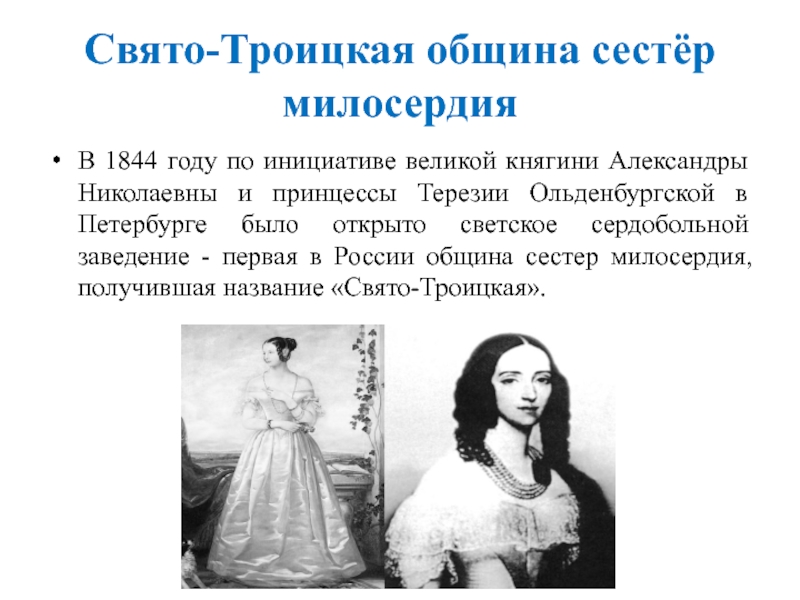 светское сердобольной заведение - первая в России община сестер милосердия, получившая название «Свято-Троицкая».