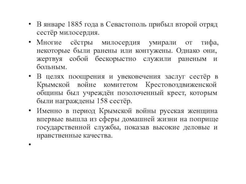 Слайд 16В январе 1885 года в Севастополь прибыл второй отряд сестёр
