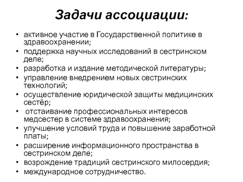 отстаивание профессиональных интересов медсестер в системе здравоохранения;