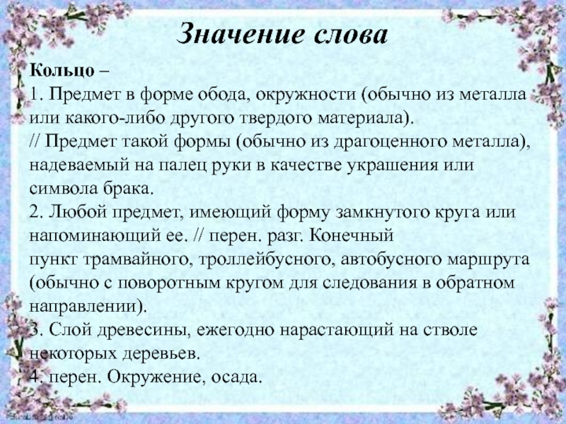 Кольцо буквально «кружок».