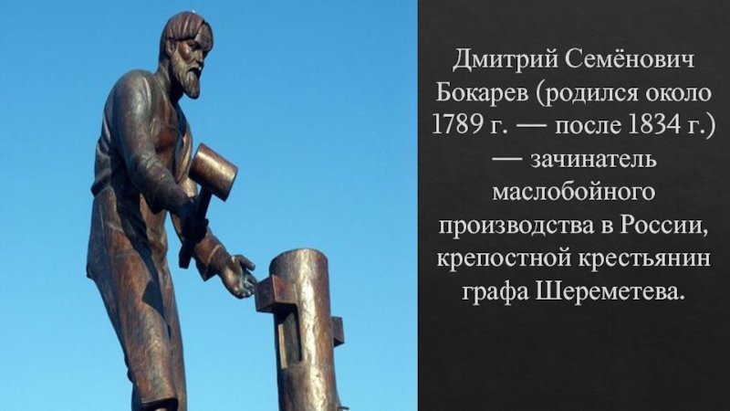 Дмитрий Семёнович Бокарев (родился около 1789 г. — после 1834 г.) — зачинатель маслобойного производства в России,