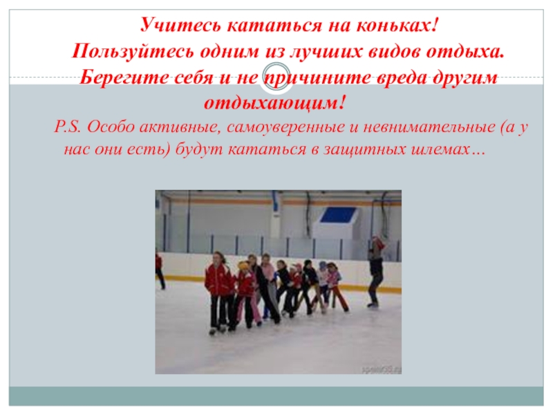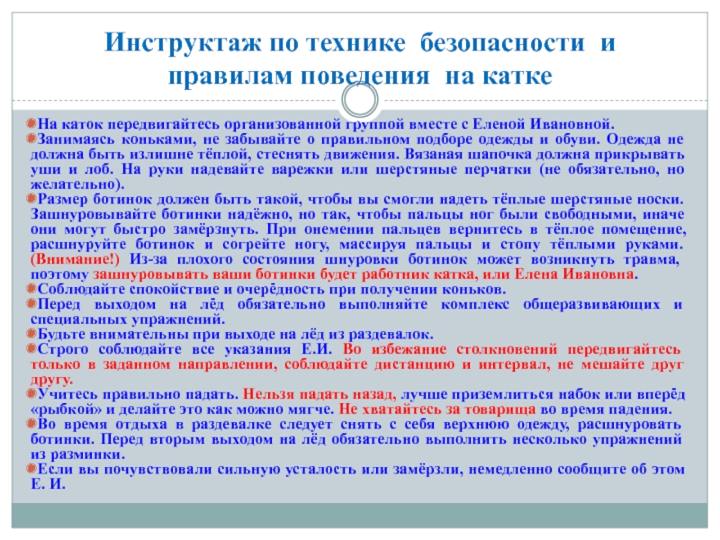 Слайд 7Инструктаж по технике безопасности и правилам поведения на катке