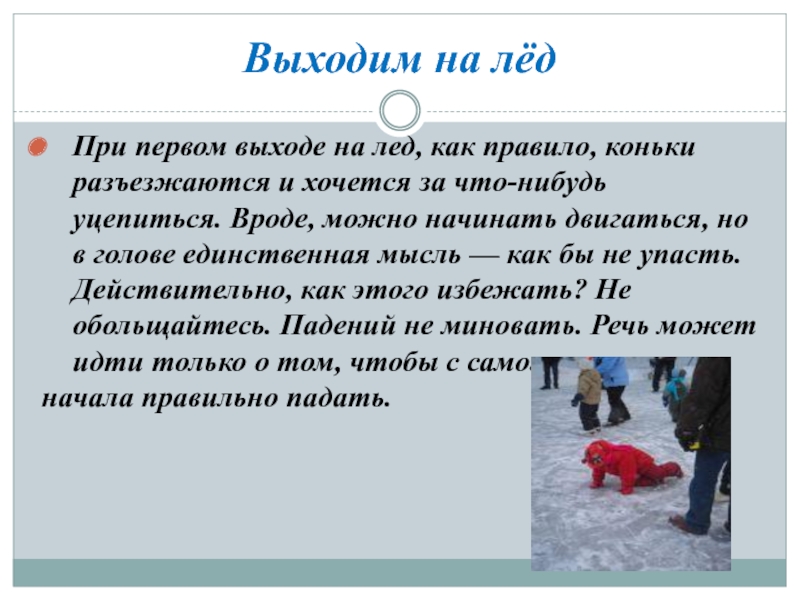 но в голове единственная мысль — как бы не упасть. Действительно, как этого избежать? Не обольщайтесь. Падений не миновать. Речь может идти только о том, чтобы с самого