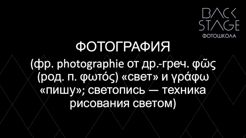 ФОТОГРАФИЯ (фр. photographie от др.-греч. φῶς (род. п. φωτός) «свет» и γράφω «пишу»; светопись — техника рисования