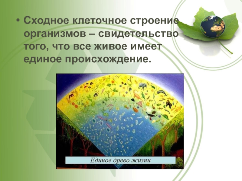 Слайд 18Сходное клеточное строение организмов – свидетельство того, что все живое