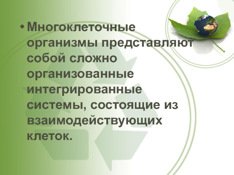 Слайд 17Многоклеточные организмы представляют собой сложно организованные интегрированные системы, состоящие из