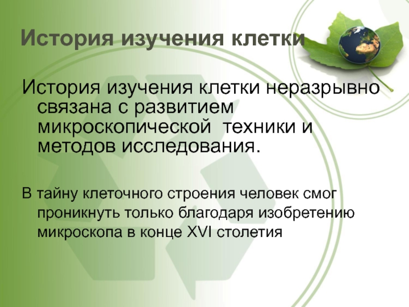 «История изучения клетки. Клеточная теория»Тема презентации: