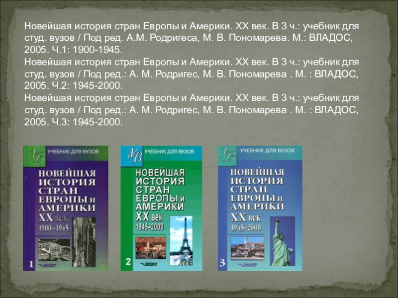 Слайд 4Пономарев М.В. История стран Европы и Америки в Новейшее время.