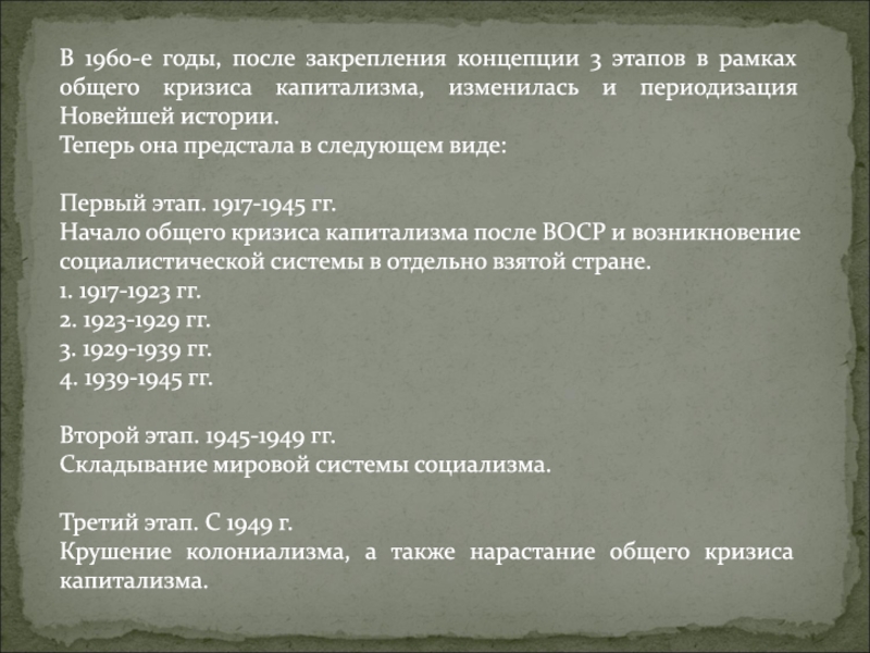 общего кризиса капитализма, изменилась и периодизация Новейшей истории.