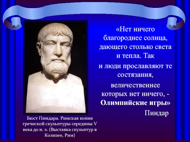 Бюст Пиндара. Римская копия греческой скульптуры середины V века до н. э. (Выставка скульптур в Колизее, Рим)