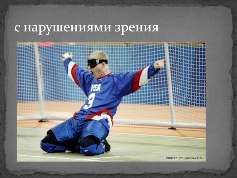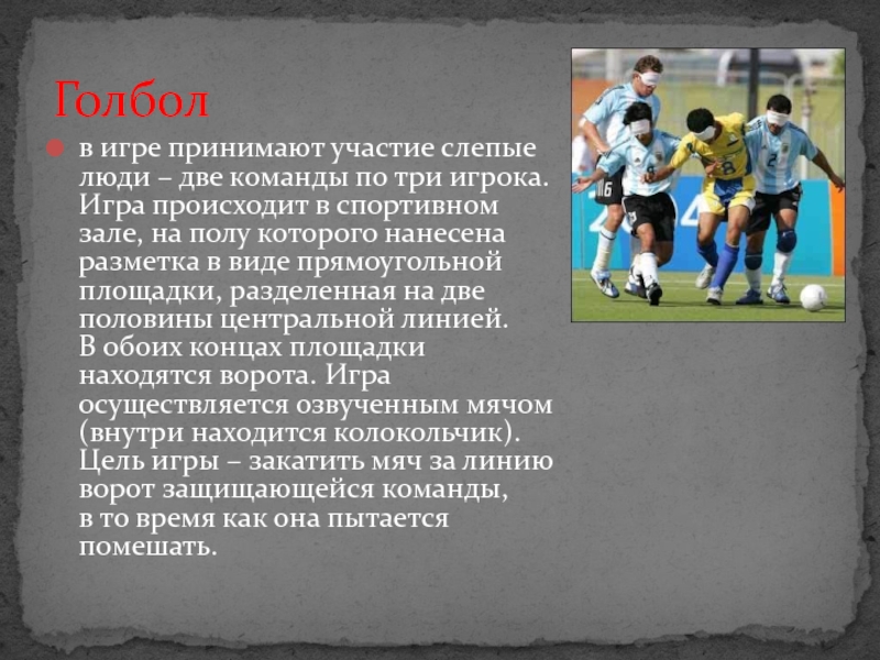 Слайд 15в игре принимают участие слепые люди – две команды по три игрока. Игра