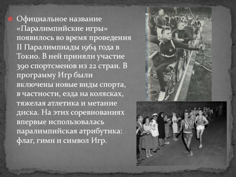 Слайд 11Официальное название «Паралимпийские игры» появилось во время проведения II Паралимпиады