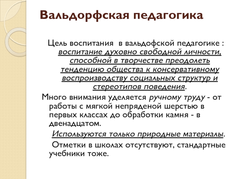 Цель воспитания в вальдофской педагогике : воспитание духовно свободной