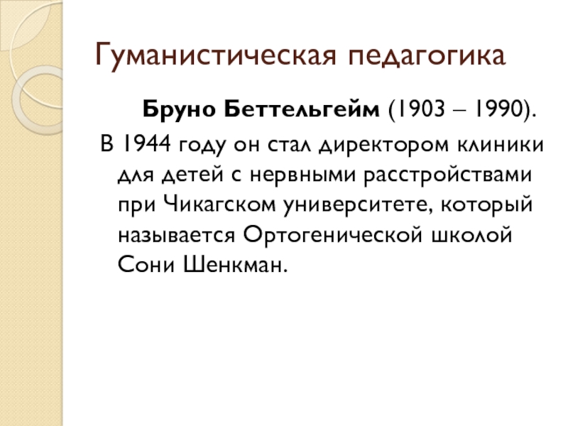 расстройствами при Чикагском университете, который называется Ортогенической школой Сони Шенкман.