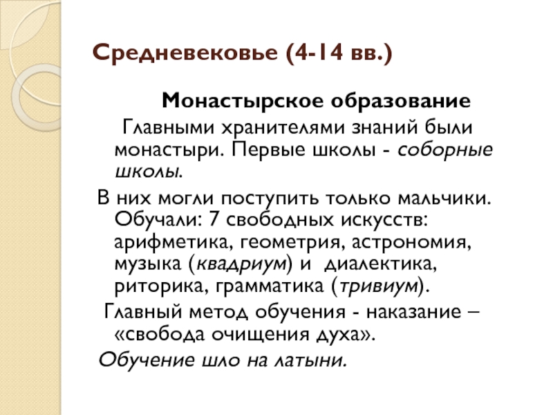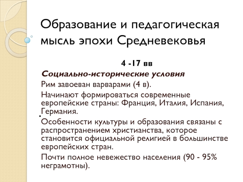 Слайд 7Образование и педагогическая мысль эпохи Средневековья