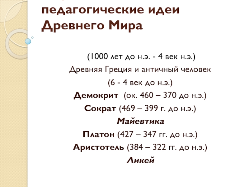 Слайд 3Образование и педагогические идеи Древнего Мира
