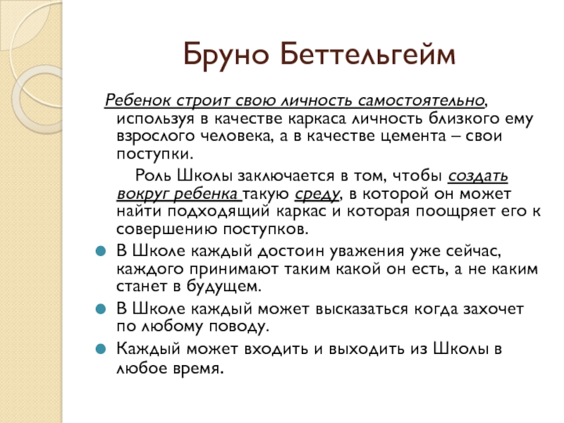 Роль Школы заключается в том, чтобы создать вокруг ребенка такую среду, в которой он может найти подходящий каркас и которая поощряет его к совершению поступков.