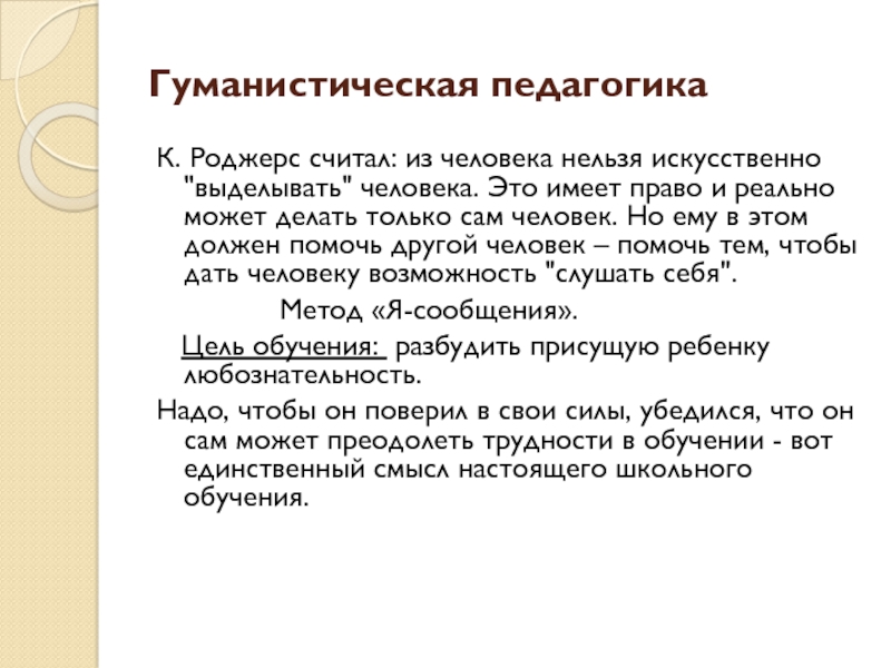 К. Роджерс считал: из человека нельзя искусственно "выделывать" человека.