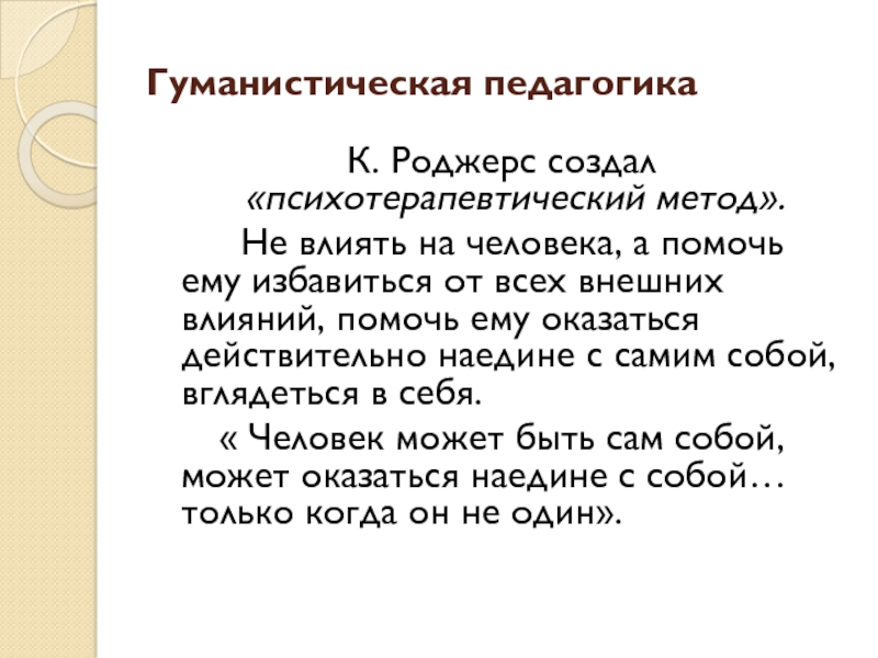 Но ему в этом должен помочь другой человек – помочь тем, чтобы дать человеку возможность "слушать себя".