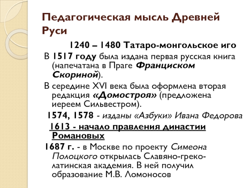 Слайд 15Развитие образования и педагогической мысли в Древней Руси и Российском