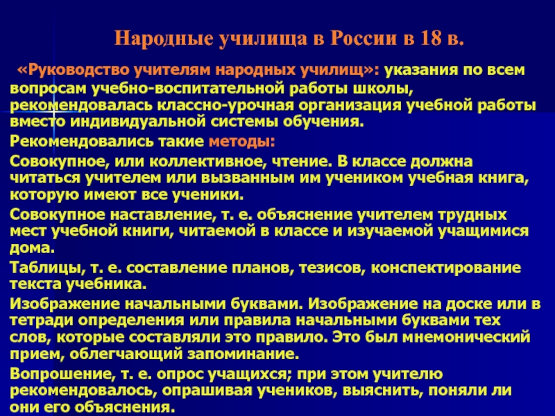 училищ»: указания по всем вопросам учебно-воспитательной работы школы, рекомендовалась классно-урочная