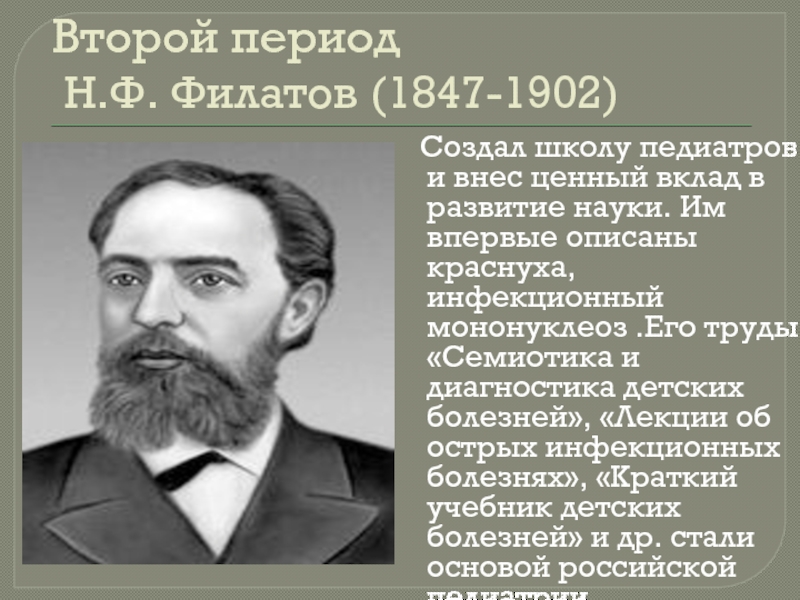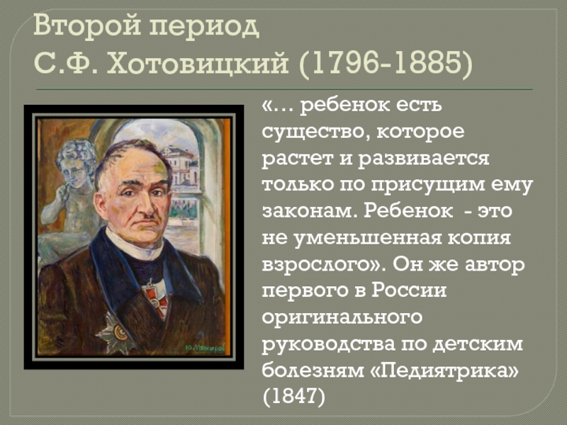 это не уменьшенная копия взрослого». Он же автор первого в России оригинального руководства по детским болезням «Педиятрика» (1847)