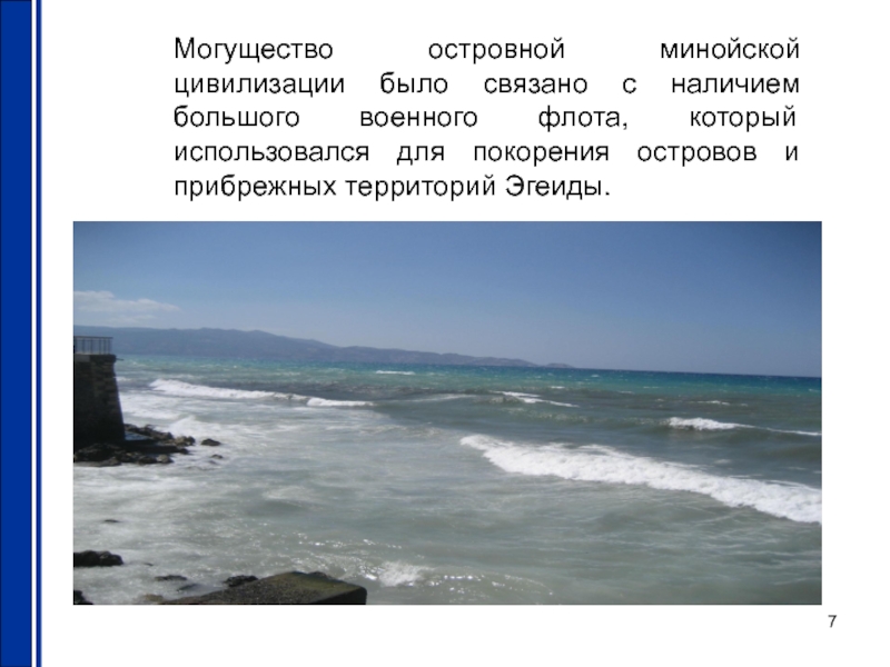Слайд 7Могущество островной минойской цивилизации было связано с наличием большого военного
