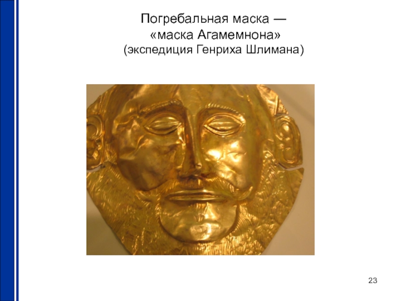 Слайд 23Погребальная маска ― «маска Агамемнона» (экспедиция Генриха Шлимана)