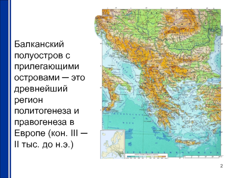Слайд 2Балканский полуостров с прилегающими островами ─ это древнейший регион политогенеза и