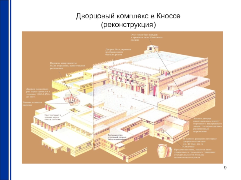 Слайд 9Дворцовый комплекс в Кноссе (реконструкция)
