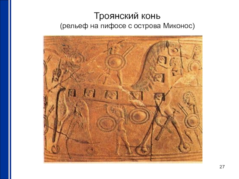 Слайд 27Троянский конь (рельеф на пифосе с острова Миконос)
