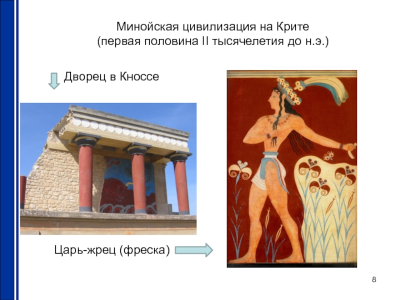 Слайд 8Минойская цивилизация на Крите (первая половина II тысячелетия до н.э.)