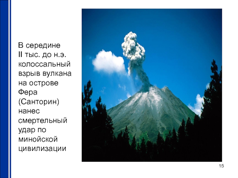 Слайд 15В середине II тыс. до н.э. колоссальный взрыв вулкана на острове