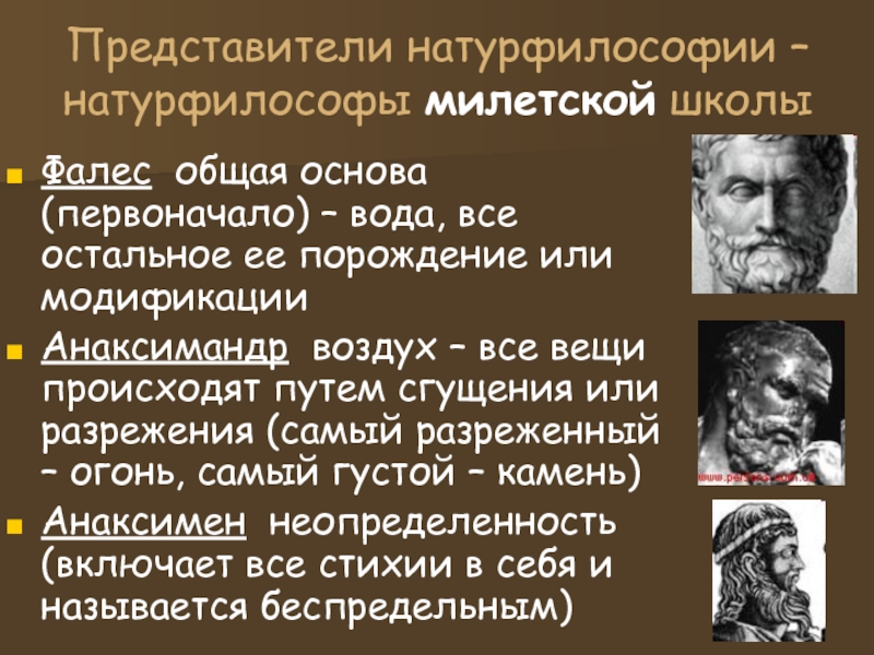 Слайд 9Представители натурфилософии – натурфилософы милетской школы
