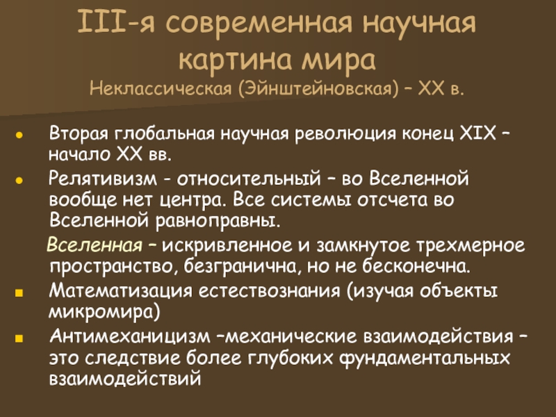 Открыв все механические законы, по кот. устроена Вселенная можно создать законченную картину мира, а знания о мире исчерпывающими, завершенными, абсолютными.