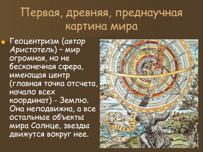 всех координат) - Землю. Она неподвижна, а все остальные объекты мира Солнце, звезды движутся вокруг нее.