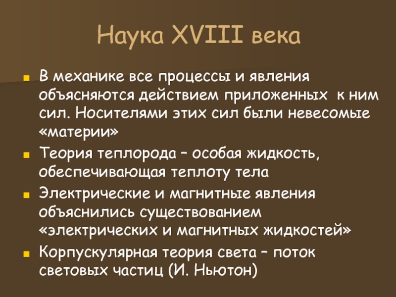 приложенных к ним сил. Носителями этих сил были невесомые «материи»