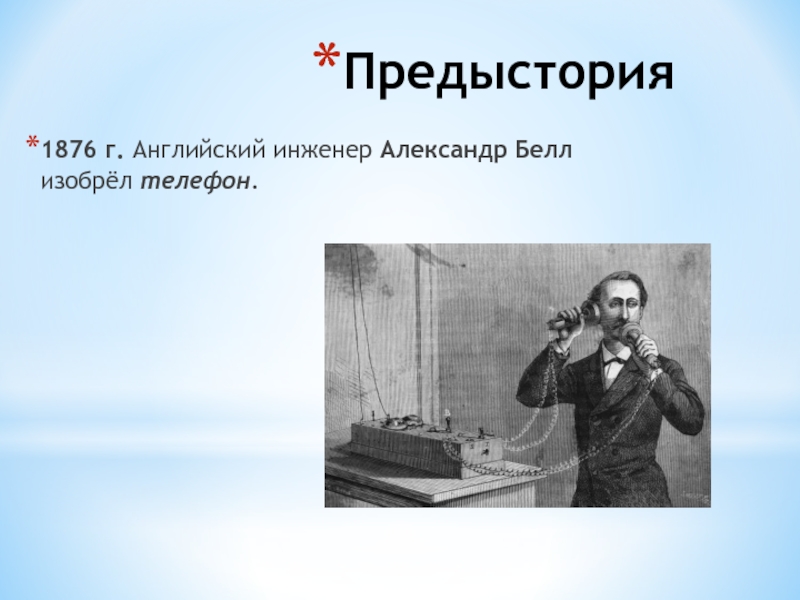 1876 г. Английский инженер Александр Белл изобрёл телефон.
