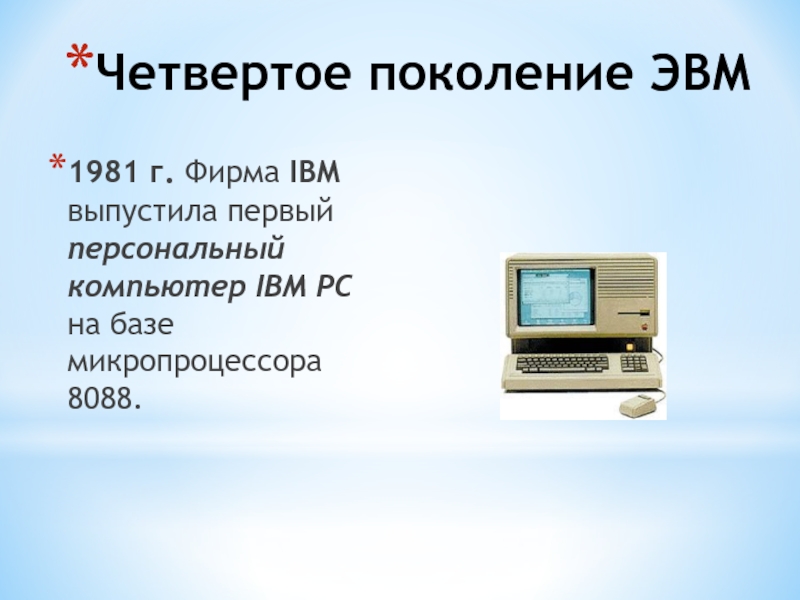 1981 г. Фирма IBM выпустила первый персональный компьютер