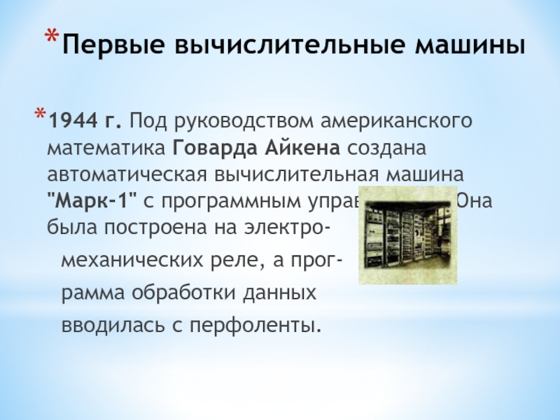 создана автоматическая вычислительная машина "Марк-1" с программным управлением. Она была