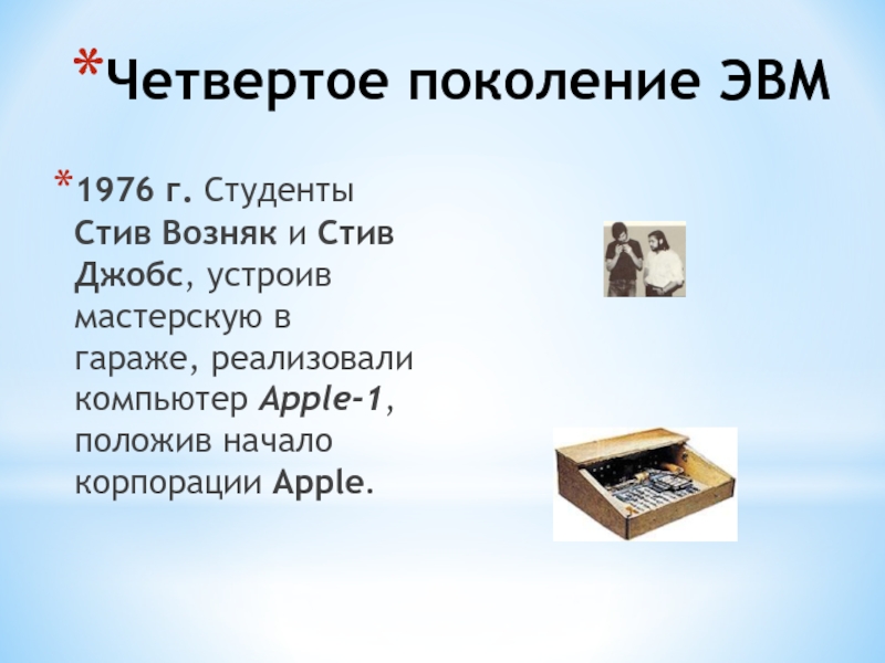 1976 г. Студенты Стив Возняк и Стив Джобс,