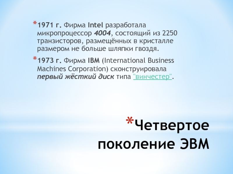 1971 г. Фирма Intel разработала микропроцессор 4004, состоящий