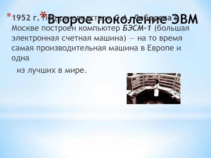 построен компьютер БЭСМ-1 (большая электронная счетная машина) — на то